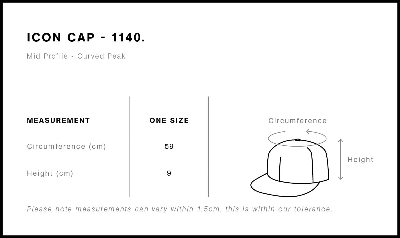 Stand out in style with the Icon Cap. This mid-profile, six-panel cap features a curved peak and is crafted from mid-weight 100% cotton for durability. Structured with a contoured crown, plastic snapback, and eyelets, it includes tonal under-peak lining for added comfort.